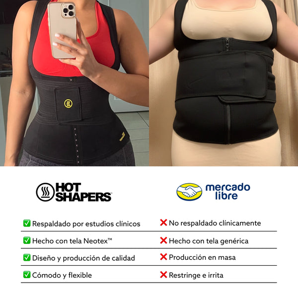 Comparación antes y después de usar Hot Shapers mostrando figura más estilizada